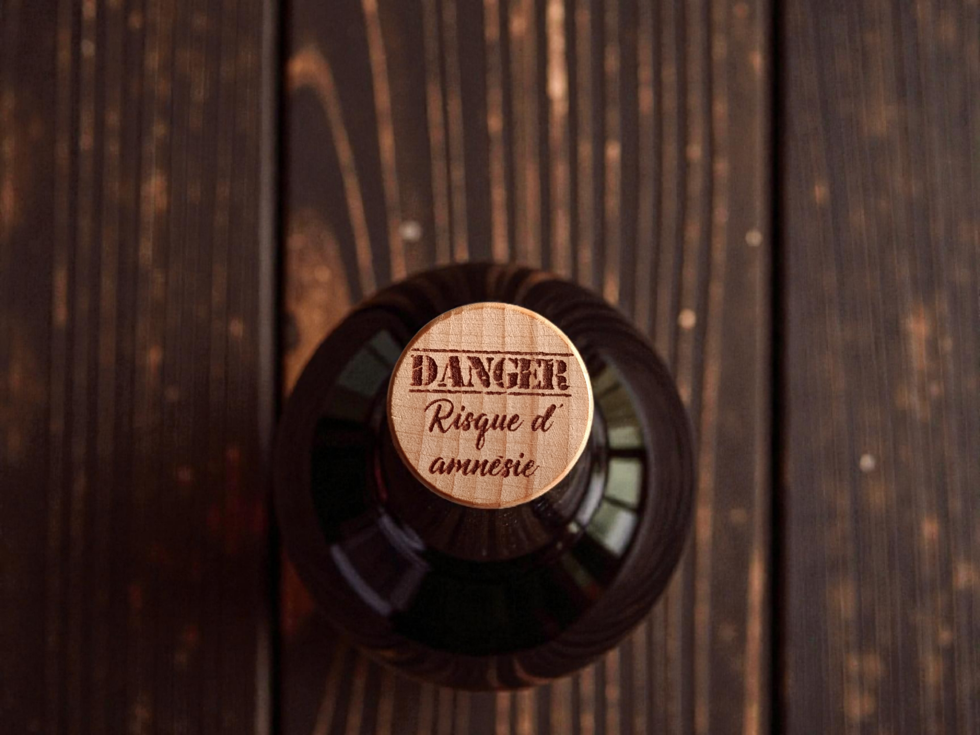 Chaque bouchon est gravé au laser dans notre atelier en Vendée, avec des phrases décalées qui annoncent clairement la couleur avant même d’ouvrir la bouteille.