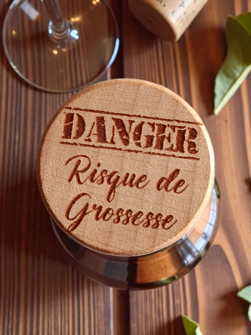 Ajoutez une touche d’humour à vos apéros avec nos bouchons de bouteille en bois gravés – série DANGER.
